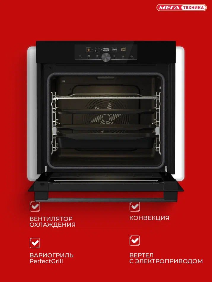 Сочетание продуманной системы циркуляции воздуха, равномерного распределения уровней приготовления и особой сводчатой формы духовки обеспечивает равномерное пропекание блюд на каждом уровне, а поскольку духовка большая, то и наблюдать за приготовлением на каждом уровне удобно.